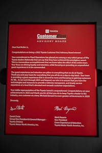 Team Toyota of Princeton is honored to receive Toyota’s Customer First Advisory Board Award! This award is based on the dealer’s achievement in Customer Satisfaction, representing the Top 50 dealers nationwide in Parts and Service. Thank you to everyone who helped us achieve this amazing award, and thank you to all our customers for being a part of our TEAM!